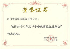 星空不问赶路人,岁月不负有心人,热烈祝贺:四川华盾保安服务有限公司荣获四川省2022年度“安全无事故优胜单位”。奋楫扬帆启新程,笃行不怠续辉煌,新目标开启新征程,新起点焕发新活力。全体华盾人将保持昂扬奋进的精神状态,“创”的劲头,“干”的作风,守正创新,勇毅前行,向着更高更远的目标迈进!